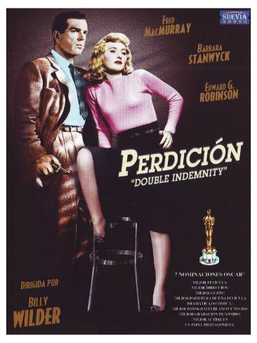 PERDICIÓN del director BILLY WILDER, estrenada en 1944, está basada en una novela corta de JAMES M. CAIN, PACTO DE SANGRE (1935). Ni la película, ni el libro salieron con el título original de Cain, Double Indemnity, supongo que por esa creatividad intencionada que busca conseguir un mayor número de lectores y espectadores con títulos más llamativos.
